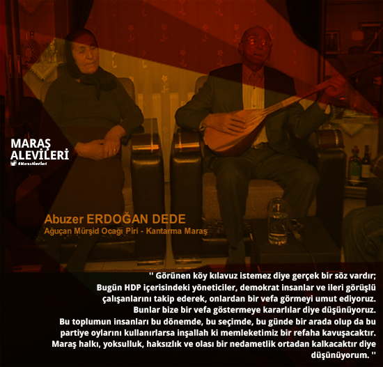 Maraş Elbistan Kantarma Köyü Ağuçan Mürşid ocağı pirlerinden Abuzer Erdoğan Dede Alevilerin tarihsel ve güncel sorunları ile seçim sürecinden beklentilerini değerlendirdi.