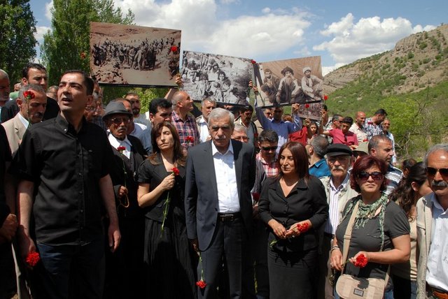 Dersim katliamının anma etkinliğine katılmak için Dersim’e gelen DTK eş başkanları Ahmet Türk ve Aysel Tuğluk, yoğun ilgiyle karşılandı. Türk, Seyit Rıza’nın direniş sembolü olduğunu belirterek, “Hep barıştan yana olduk. Bugün de barıştan yanayız, yarın da zulme boyun eğmeyeceğiz” dedi.