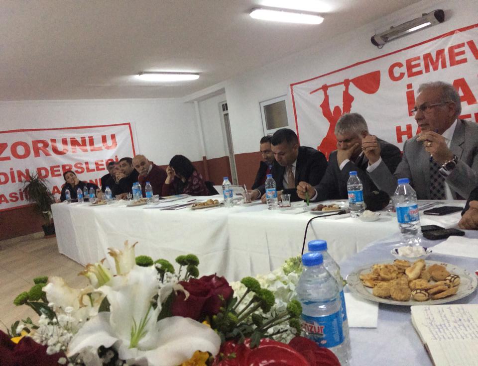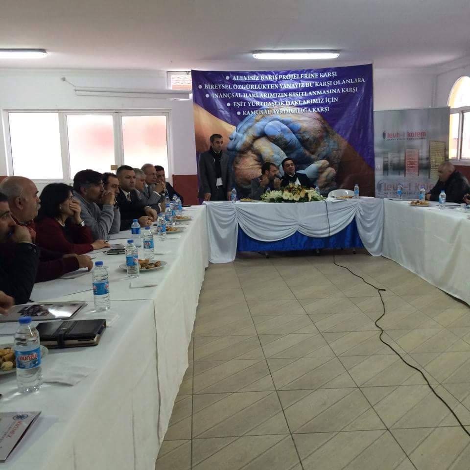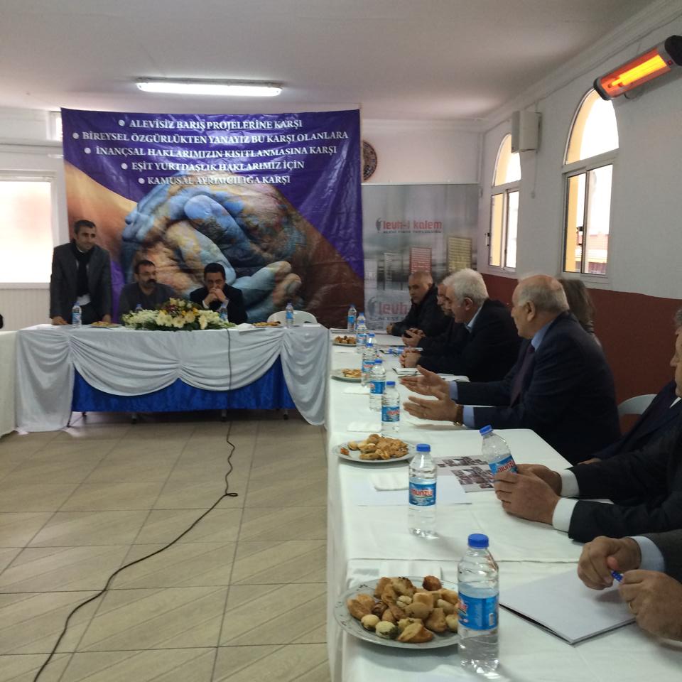 ALEVİ TOPLUMUNUN VE HAREKETİNİN BİRLİK SORUNUNU TARTIŞMAK, ÖNÜMÜZDEKİ SÜREÇTE YAPILACAK EYLEM PROGRAMINI OLUŞTURMAK VE ALEVİ TOPLUMUNUN TALEPLERİNİ SEÇİM SÜRECİNDE DAHA ETKİLİ KILARAK İZLENMESİ GEREKEN TAVRI BELİRLEMEK İÇİN YAPILAN TOPLANTIYA ALEVİ BEKTAŞİ FEDERASYONU, ALEVİ DERNEKLER FEDERASYONU, ALEVİ VAKIFLAR FEDERASYONU, PİR SULTAN ABDAL KÜLTÜR DERNEĞİ, DEMOKRATİK ALEVİ DERNEĞİ VE HUBYAR SULTAN DERNEĞİ YÖNETİCİLERİ KATILDI.