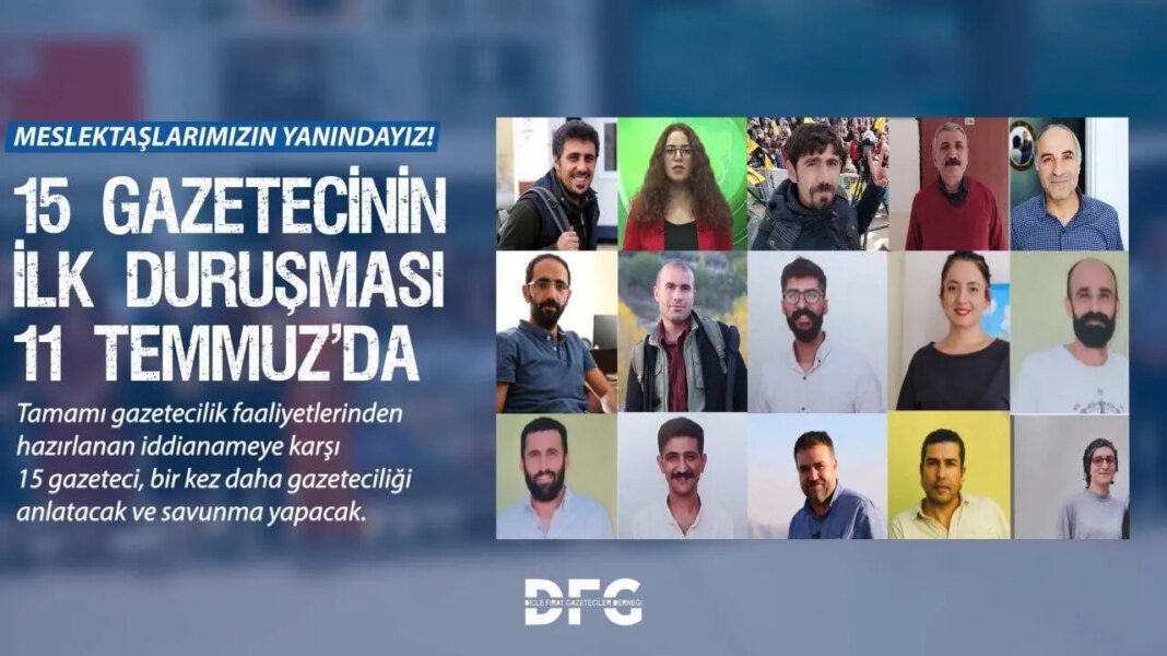 Amed merkezli 8 Haziran 2022 tarihinde yapılan ev ve işyeri baskınlarında gözaltına alındıktan sonra tutuklanan 15’i tutuklu 18 gazeteci, 11 Temmuz’da ilk kez hakim karşısına çıkacak. Gazetecilik faaliyetleri nedeniyle “örgüt üyesi olmak” suçlaması yöneltilen gazetecilerin ilk duruşması Diyarbakır 4’üncü Ağır Ceza Mahkemesi’nde görülecek. Gazeteci örgütlerinin yanı sıra çok sayıda hukuk ve sivil toplum örgütünün de duruşmayı takip etmesi bekleniyor.