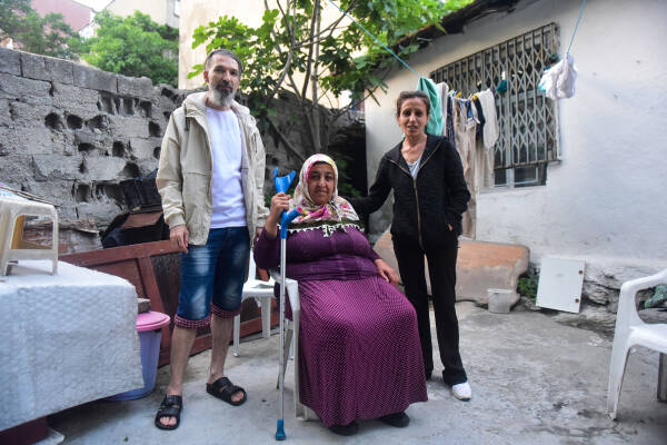 Kanser hastası olan 70 yaşındaki Hamdiye Oruç, yeni ameliyat olduğunu ve bu koşullarda çok büyük sıkıntı çektiğini söyledi. Çocuklarının çalıştığını ve gençlerin yardımıyla eve su taşındığını belirten Oruç, “Defalarca yeni ameliyat olduğumu söyledim ama dinlemediler. Biz burada kiracıyız ve daire sahibi imza verdiği için elektriği, suyu kesip gittiler. Öylece kalakaldık. Eşim vefat ettikten sonra Diyarbakır Bismil’den çocuklarımın yanına geldim. Ama zorla çıkarırlarsa yeniden memlekete döneceğim, ne yapayım” diye konuştu.