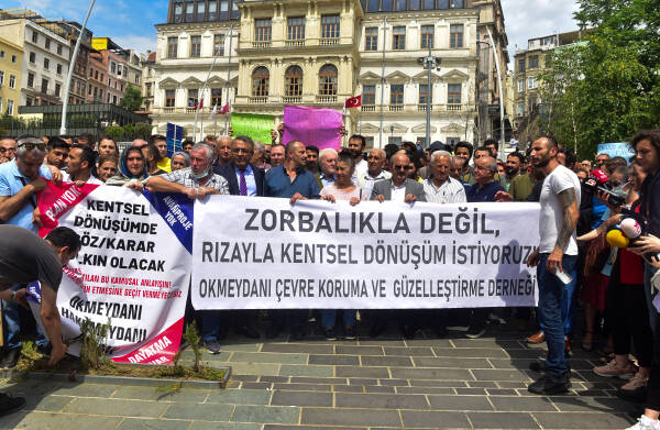 Okmeydanı Çevre Koruma ve Güzelleştirme Derneği öncülüğünde yapılan açıklamaya, HDP ve CHP milletvekilleri yanı sıra çok sayıda siyasi parti ve demokratik kitle örgütü temsilcisi katıldı. “ Zorbalığa değil, rızaya kentsel dönüşüm istiyoruz” yazılı pankartın açıldığı eylemde, Fetihtepe mahalle halkı adına açıklamayı okuyan Okmeydanı Çevre Koruma ve Güzelleştirme Derneği yöneticilerinden Rüstem Karakuş Beyoğlu Belediyesi yetkililerinin rızaya dayalı dönüşüm yapılacağını vaat etmelerine rağmen, bugün 3550 nolu ada da tam tersi bir uygulamaya imza attıklarını hatırlattı.